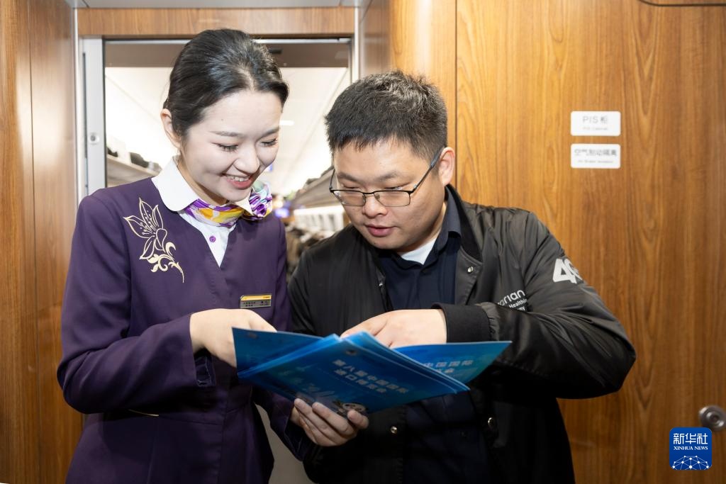 10月30日,上海客运段列车员向车厢内乘客发放进博会宣传册,介绍进博会亮点。第八届中国国际进口博览会即将开幕。中国铁路上海局集团有限公司上海客运段在上海虹桥站推出“进博八年认识上海”主题,并在G8列车上向旅客介绍进博会亮点。新华社记者 王翔 摄 10月30日,外国游客与进博会倒计时框架合影。第八届中国国际进口博览会即将开幕。中国铁路上海局集团有限公司上海客运段在上海虹桥站推出“进博八年认识上海”主题,并在G8列车上向旅客介绍进博会亮点。新华社记者 王翔 分页 10月30日,上海客运段售票员正在分发向车厢内的乘客发放进博会宣传册。第八届中国国际进口博览会即将开幕。中国铁路上海局集团有限公司上海客运段在上海虹桥站推出“进博八年认识上海”主题,并在G8列车上向旅客介绍进博会亮点。新华社记者 王翔 摄 10月30日,游客与进博会倒计时框架合影。第八届中国国际进口博览会即将开幕。中国铁路上海局集团有限公司上海客运段在上海虹桥站推出“进博八年认识上海”主题,并在G8列车上向旅客介绍进博会亮点。新华社记者 王翔 摄
